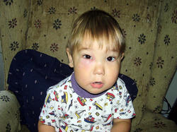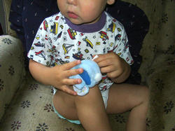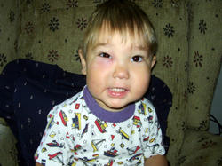 Jeremiah just LOVEs to play, and laugh, and is so inquisitive about life, and how things work, etc.! His curiosity sometimes gets him in a little trouble...like his first bee sting, which seemed OK, till the next morning!!
